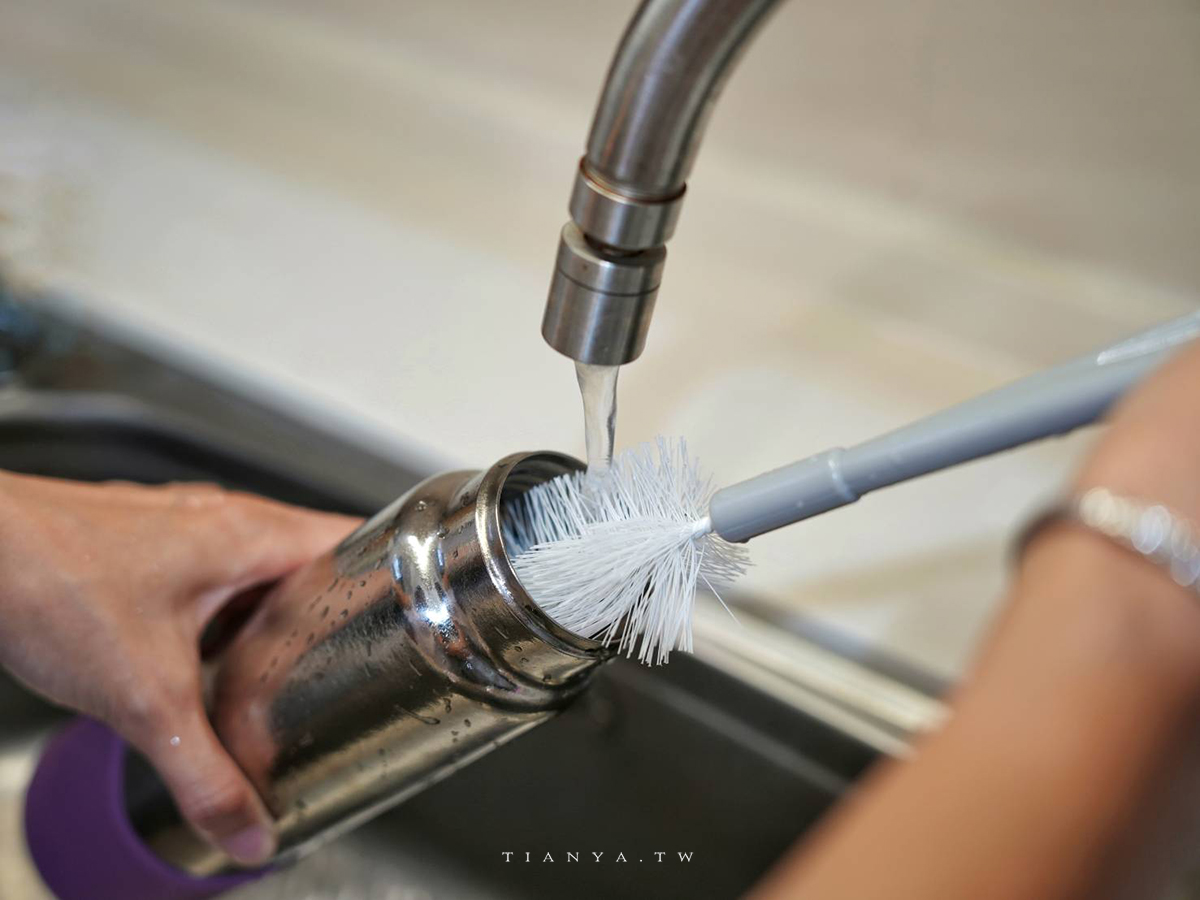 「TiKOBO 二代袋鼠瓶」附贈的刷子好好用,大刷子用來刷內膽,小刷子可以清潔吸管內壁,毛多多的設計讓髒污無所遁形!